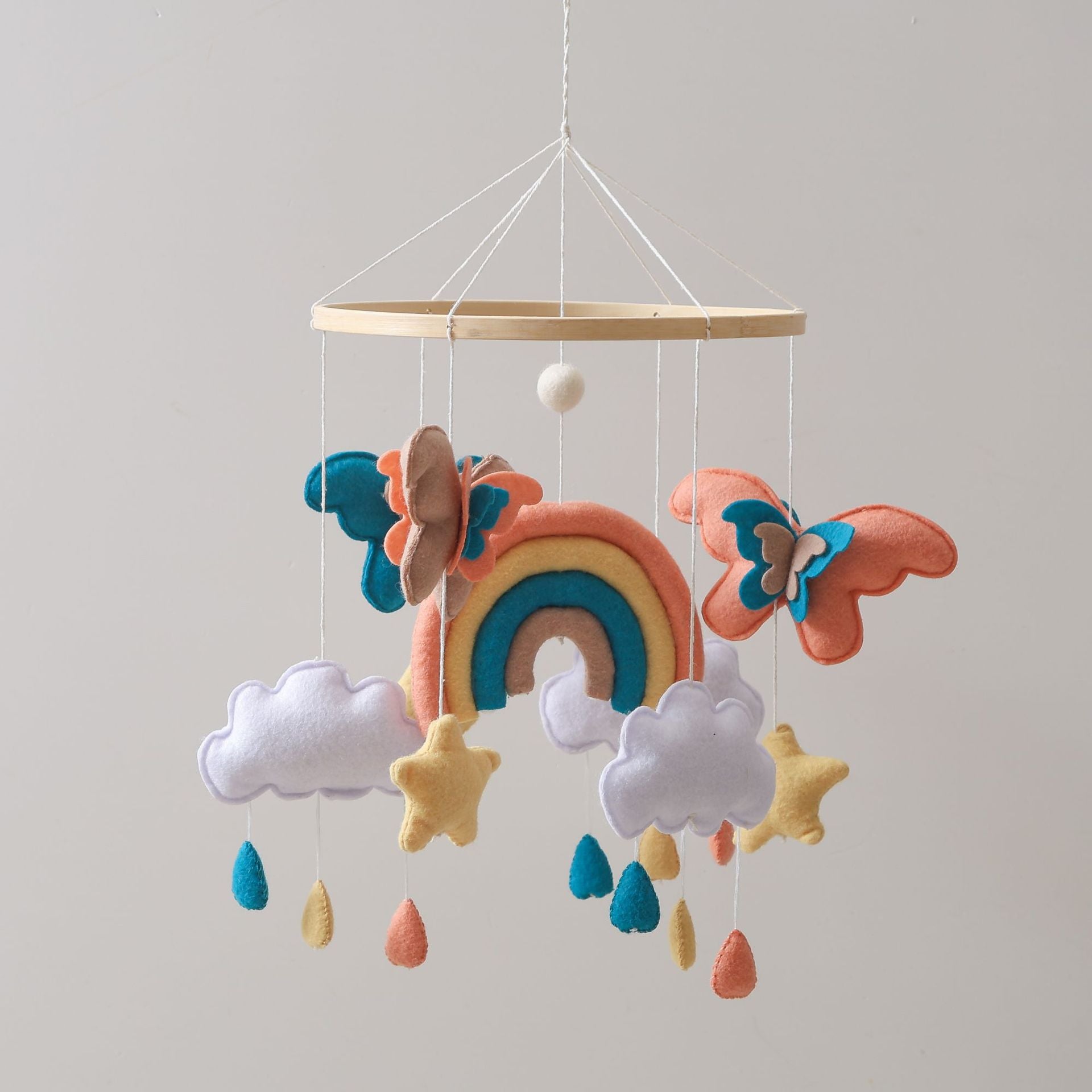 Watch their little eyes sparkle and chase each other as colorful butterflies dance softly. This handmade butterfly crib mobile is more than just a decorative accessory; it's your baby's first visual guide, a magical focal point in the nursery, and a precious gift that transforms every corner into a soft, dreamy space.