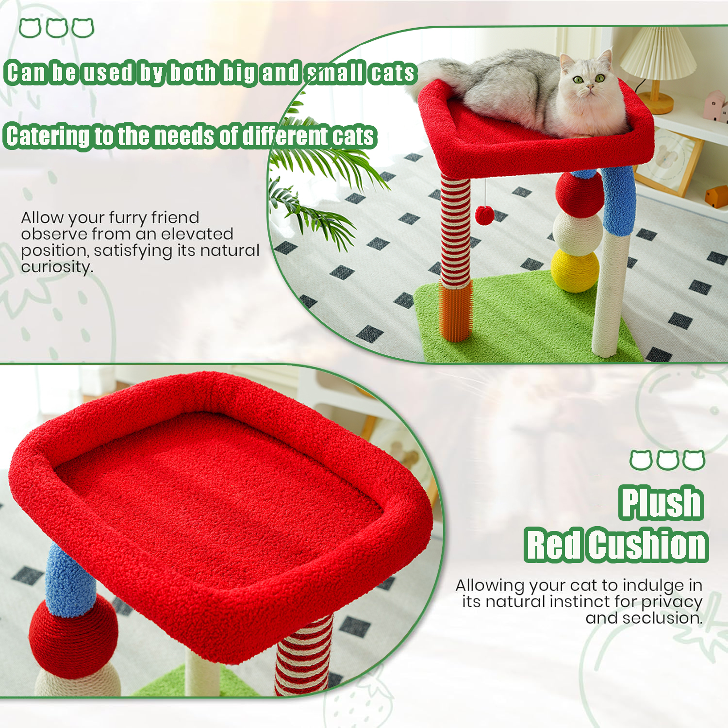 - Interactive Toy Elements: Equipped with hanging toys and dangling elements that stimulate your cat's natural hunting instincts, promoting physical activity and mental engagement.