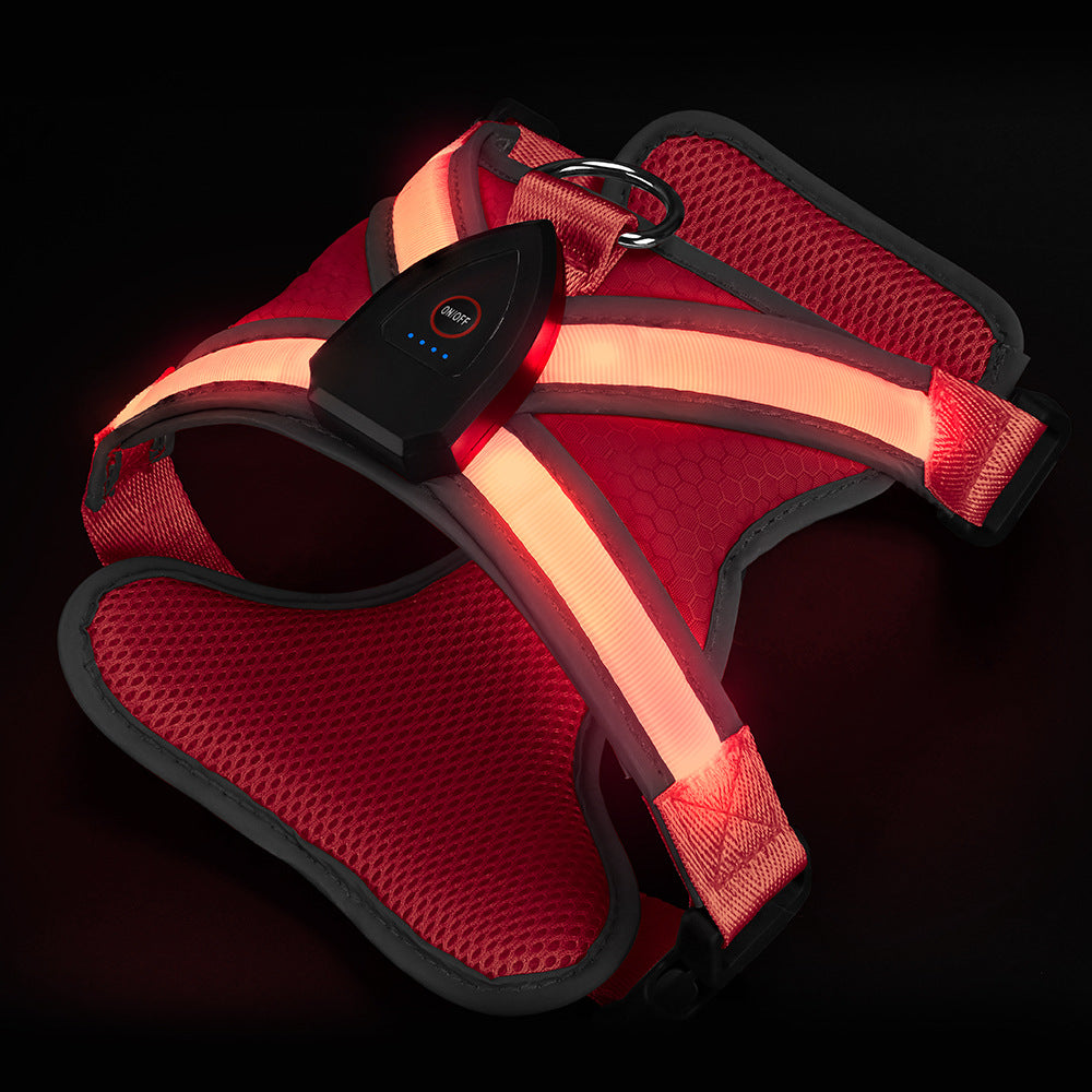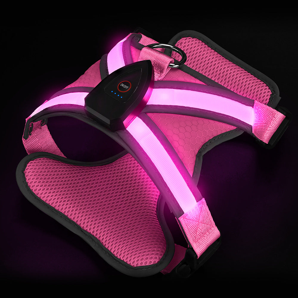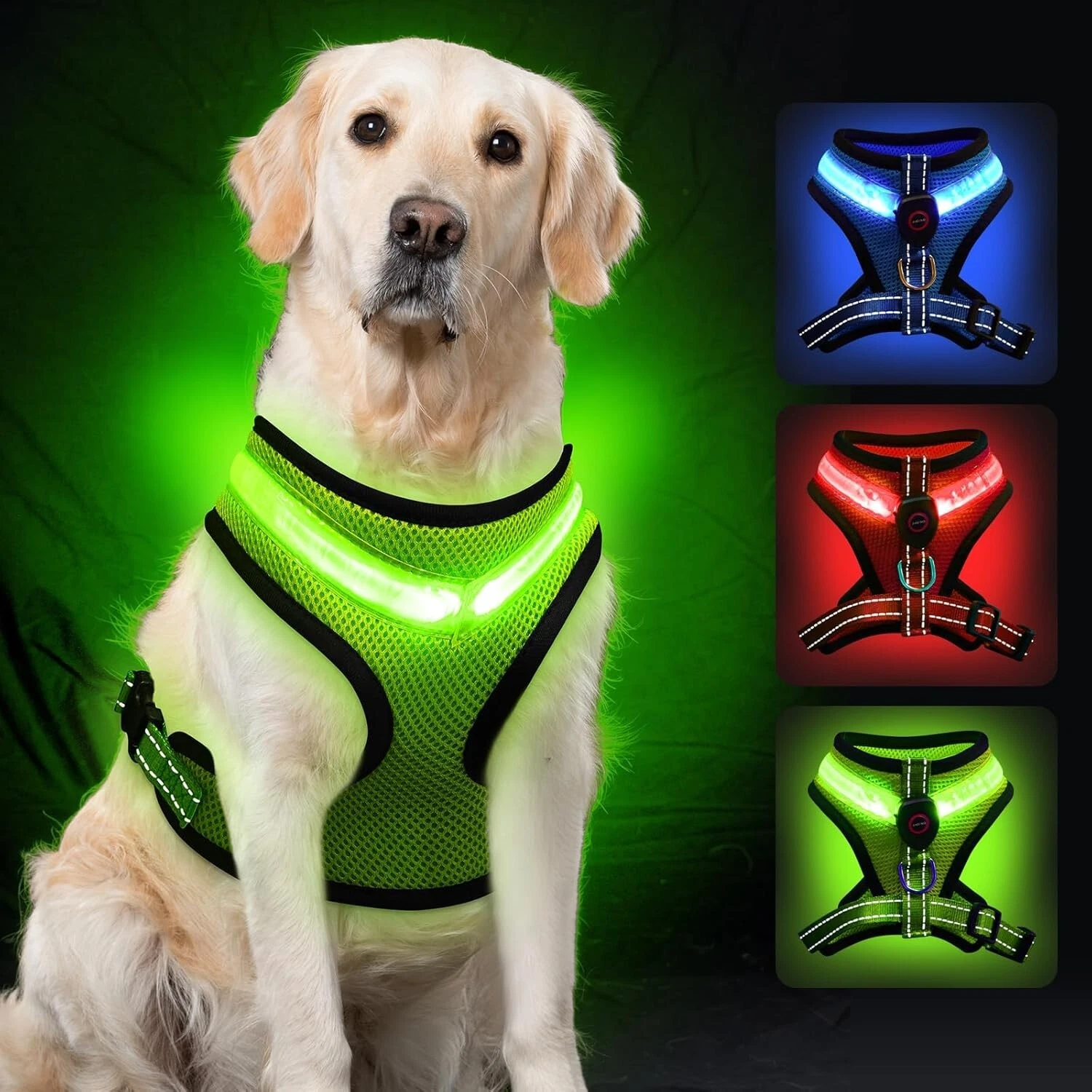 USB Rechargeable LED Dog Harness - Light Up Safety Vest for Night Walking, Adjustable Reflective Strap