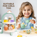 šµćFun Kids Tea Party Timeć: Your little kid gets ready to spend happy teatime with friends and family, dessert, drinks, and talk! Lay out the tablecloth, fill the dessert tower and tray with a delicious dessert, put the tea or coffee in the cup, and start tea time! The realistic wooden tea set will bring screen-free fun and leave unforgettable memories for children.